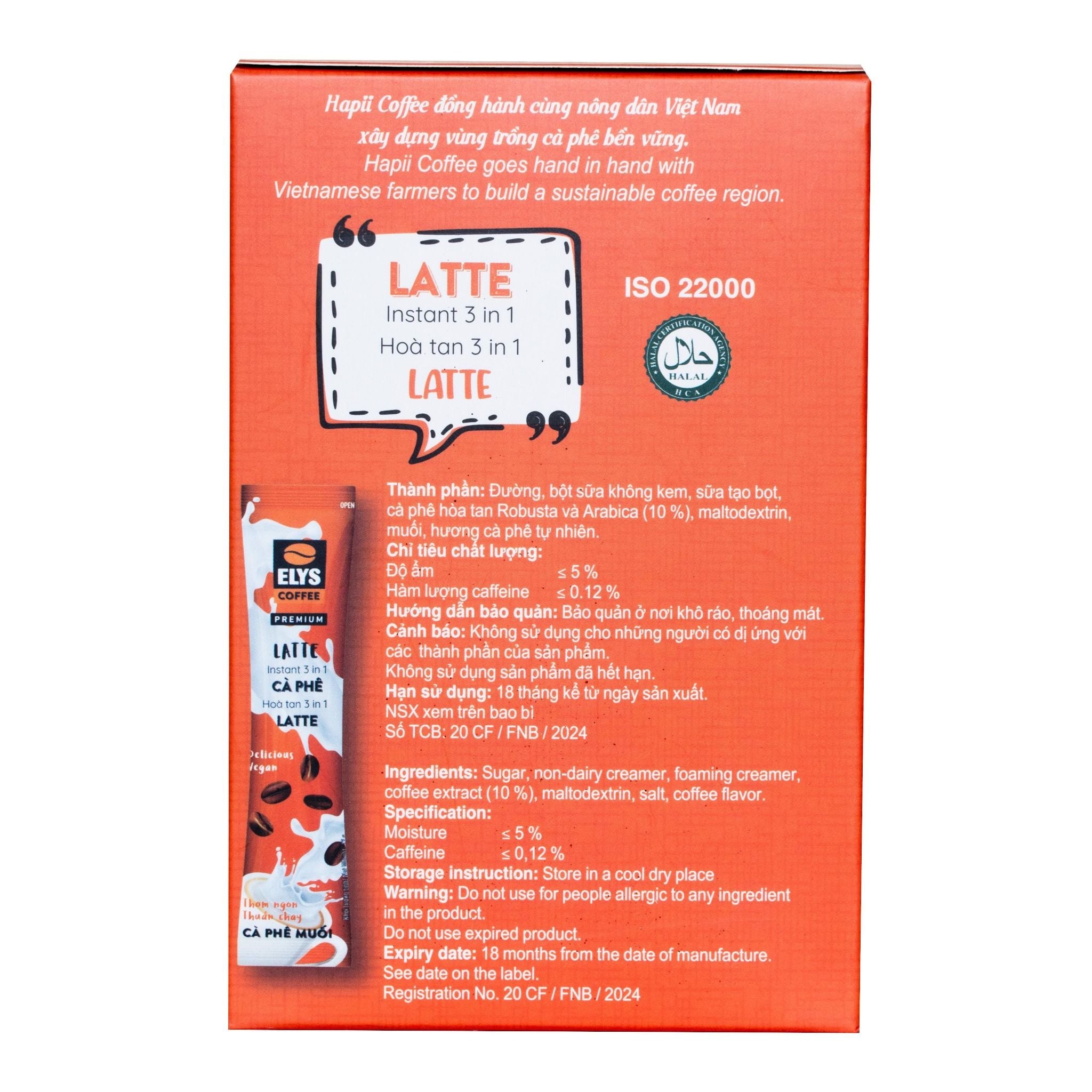 🌍 Đạt tiêu chuẩn quốc tế: Với chất lượng đạt từ 80 điểm trở lên theo tiêu chuẩn của Hiệp hội Cà phê Đặc sản Thế giới (SCA) và Viện Chất lượng Cà phê (CQI), Cà Phê Muối Latte 3in1 Elys Coffee đảm bảo sự an tâm về chất lượng và độ an toàn.