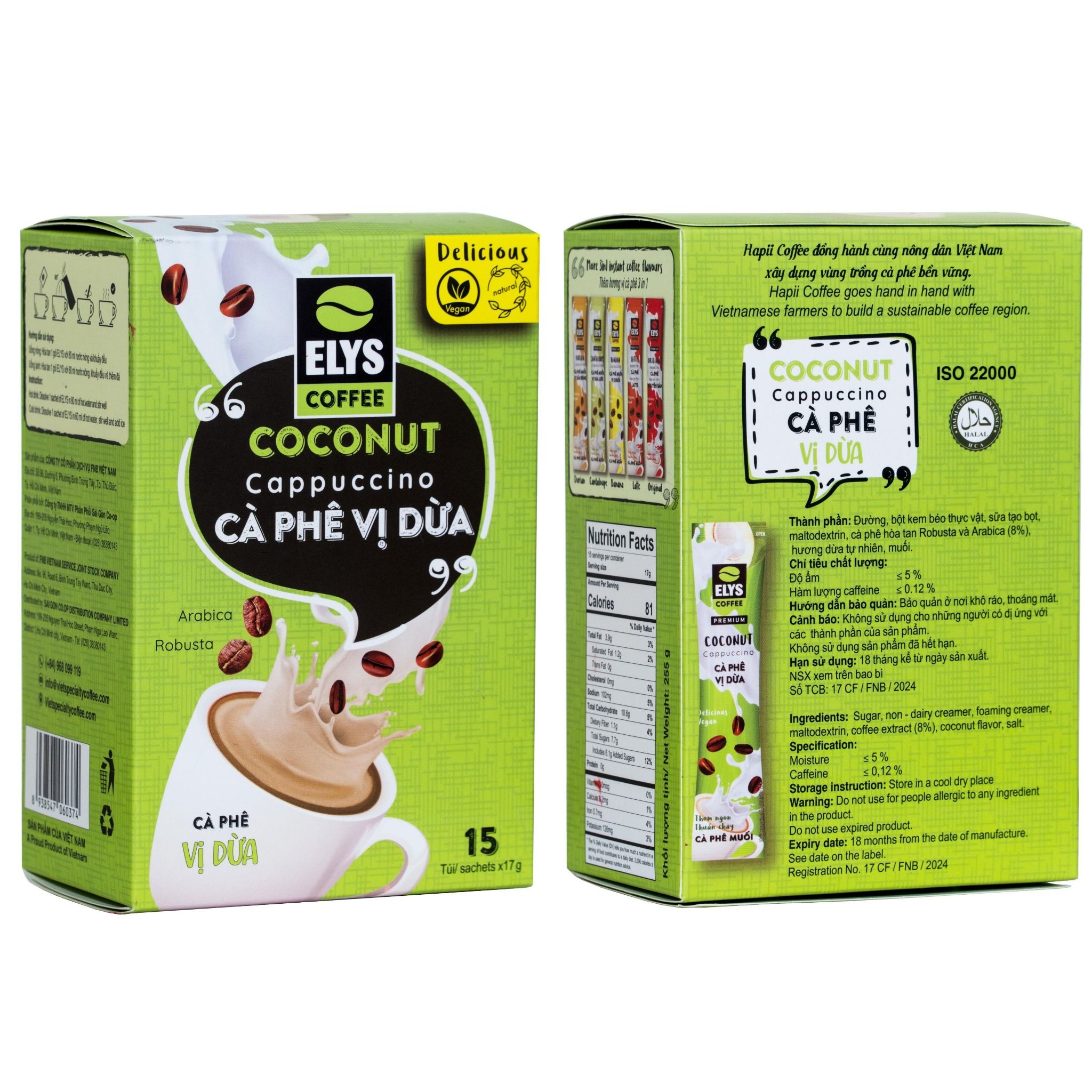 🌍 Đạt tiêu chuẩn quốc tế: Với chất lượng đạt từ 80 điểm trở lên theo tiêu chuẩn của Hiệp hội Cà phê Đặc sản Thế giới (SCA) và Viện Chất lượng Cà phê (CQI), Cà Phê Sữa Dừa 3in1 Elys Coffee cam kết mang đến sản phẩm an toàn, chất lượng cao.